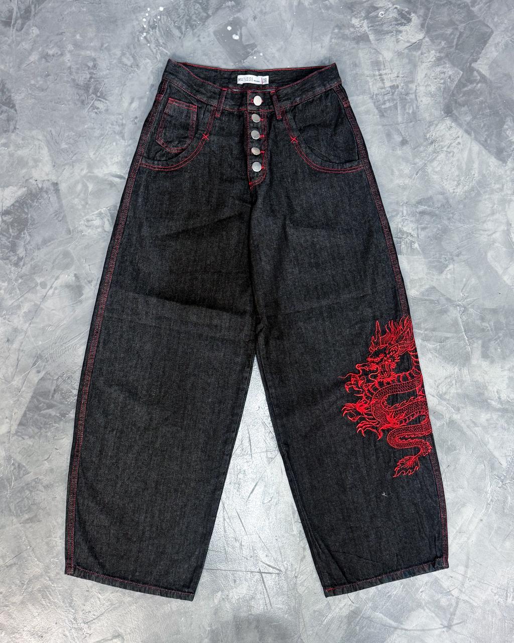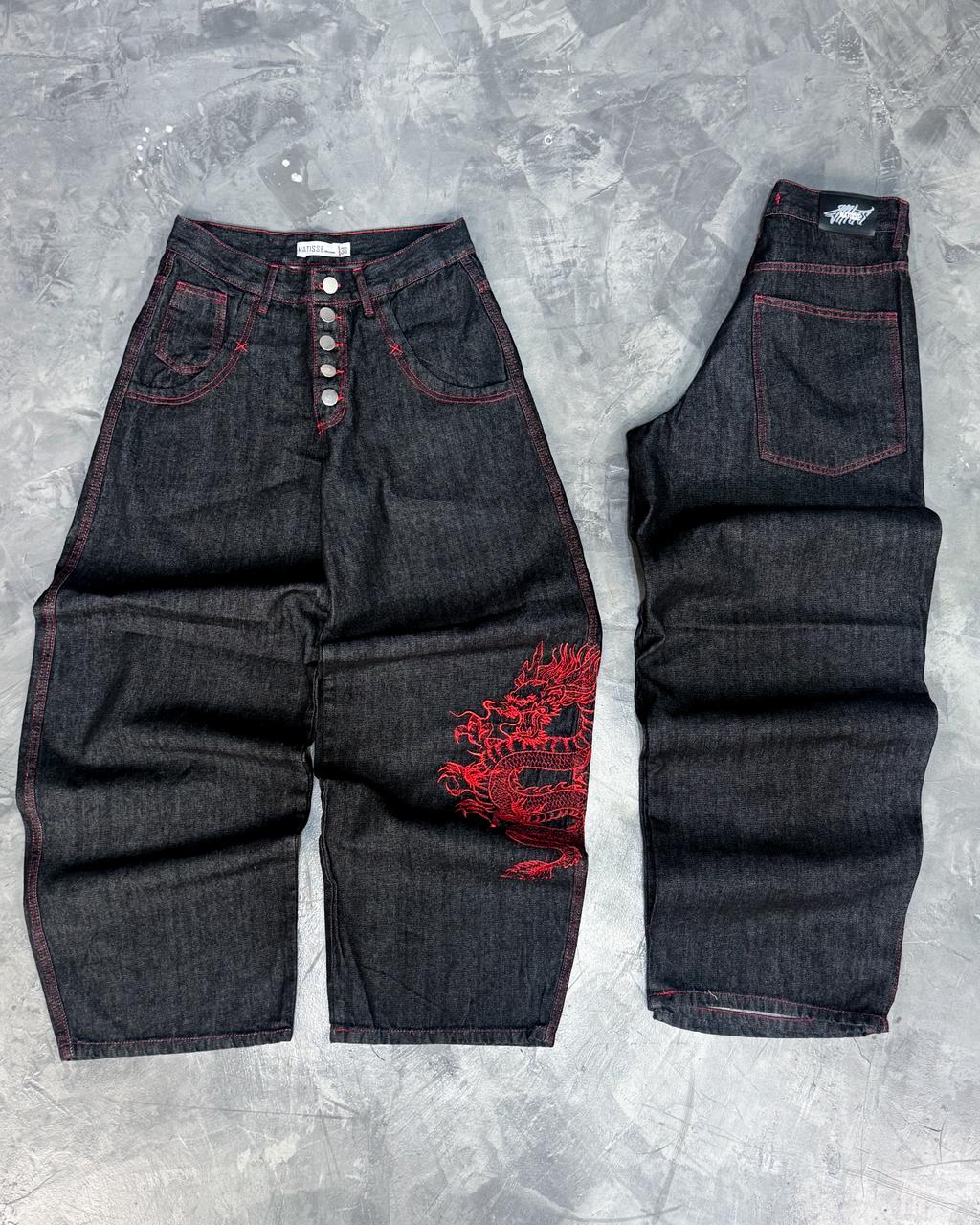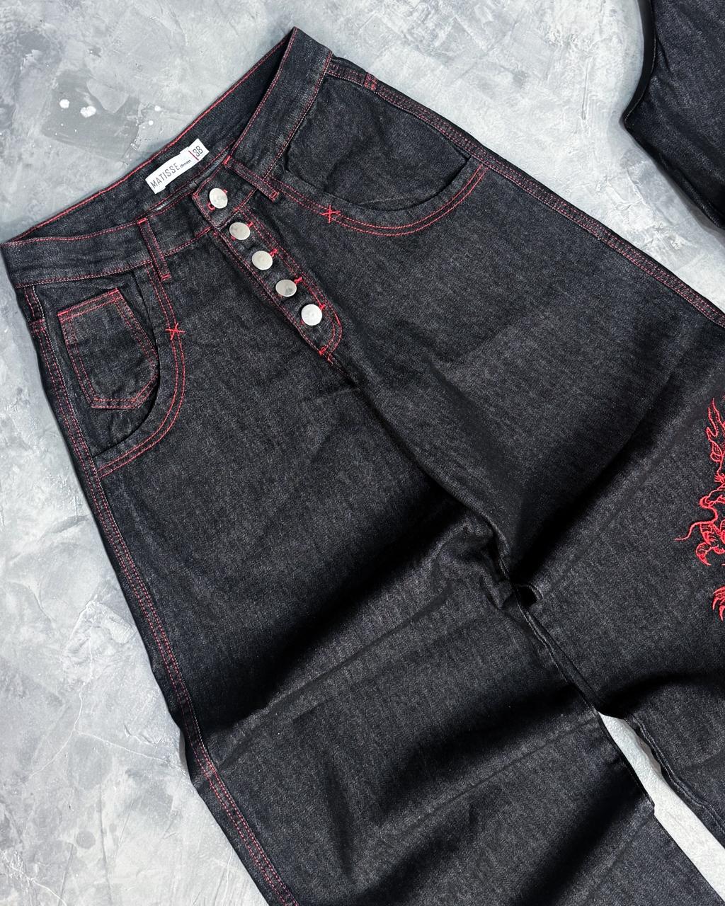 ▪️Color: Negro RAW DENIM + hilo rojo + bolsillo delantero amplio con atraque + BORDADO en la pierna